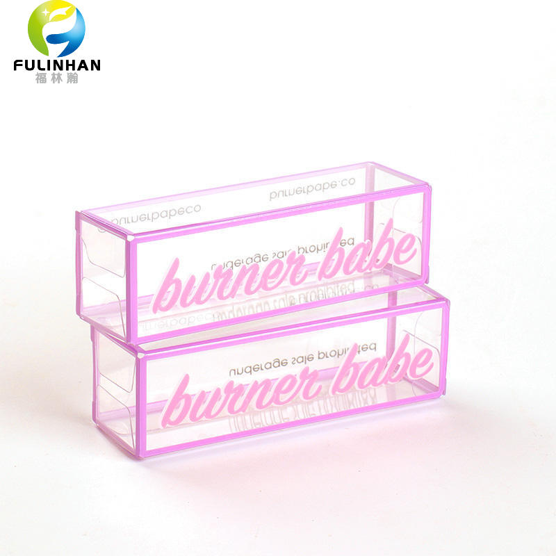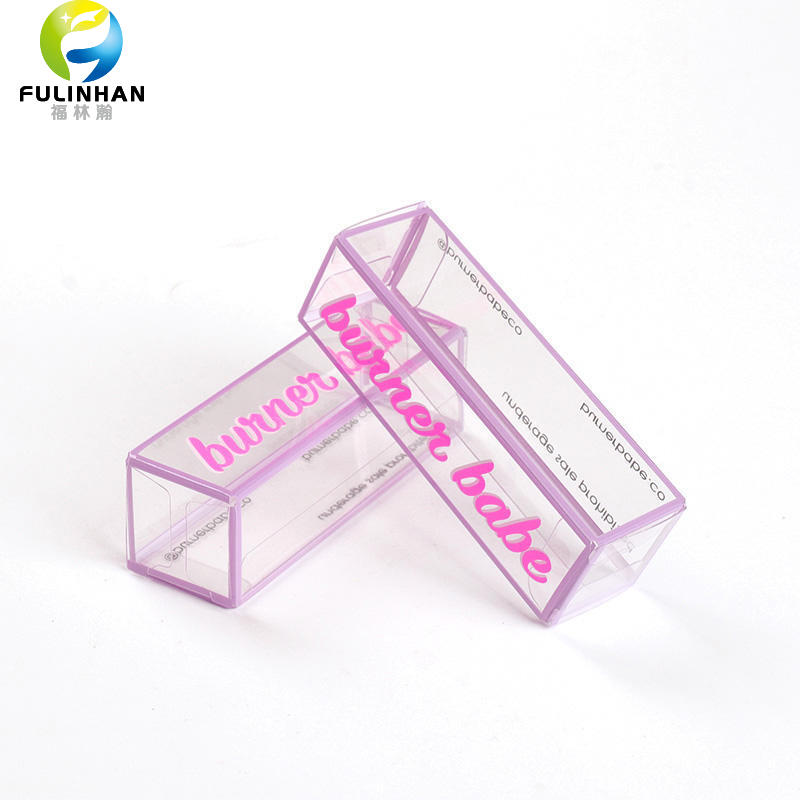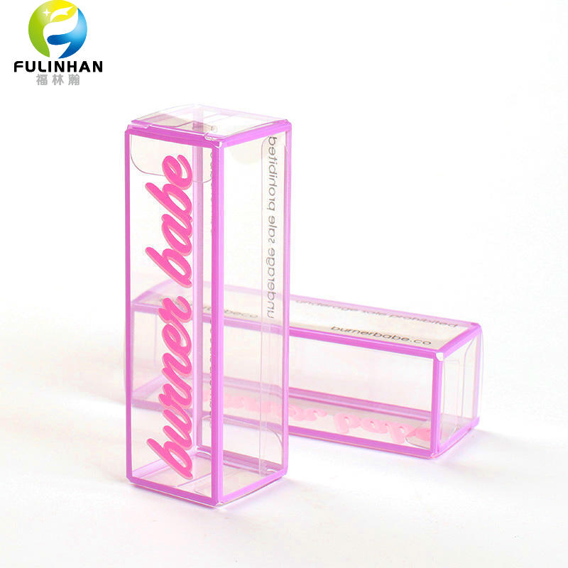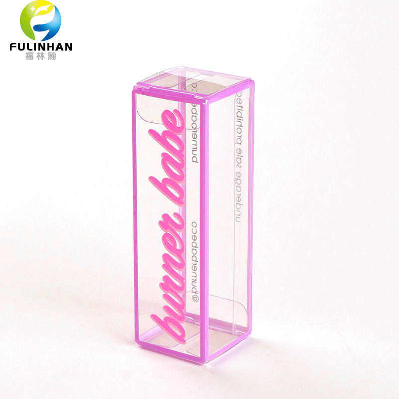 Benutzerdefinierte transparente PET-Lippenstiftbox mit lila Rand — Hersteller | Großhandel